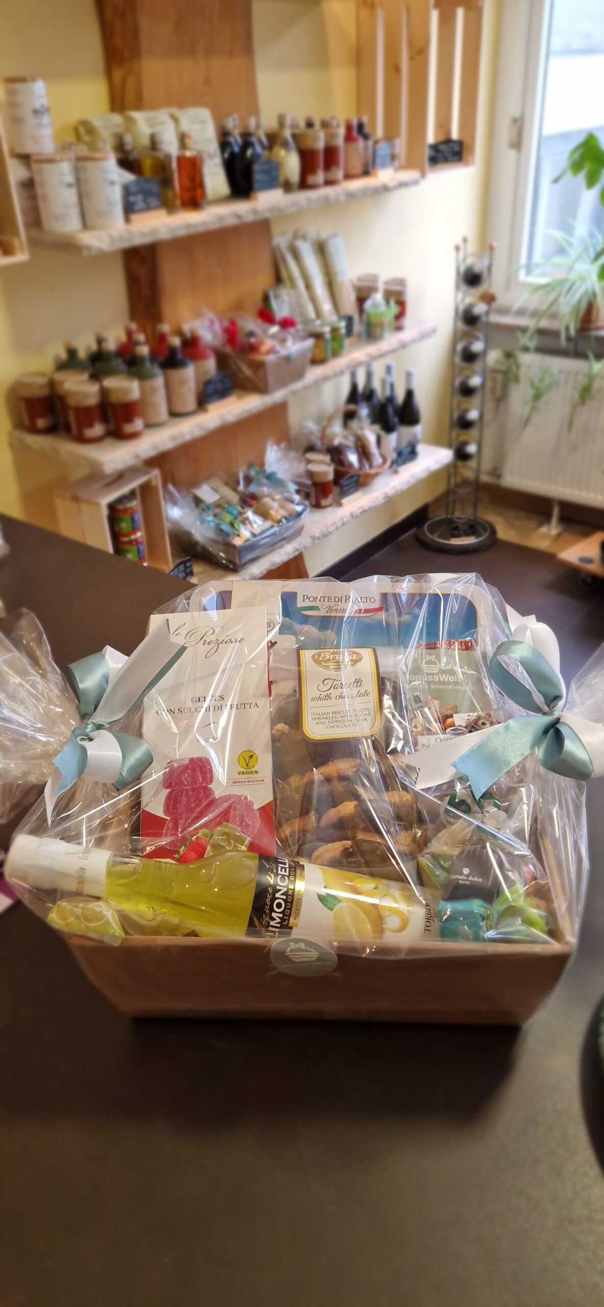 Ich suche für Dich feinste Genüsse aus, die ich liebevoll in einen Geschenkkorb verpacke.